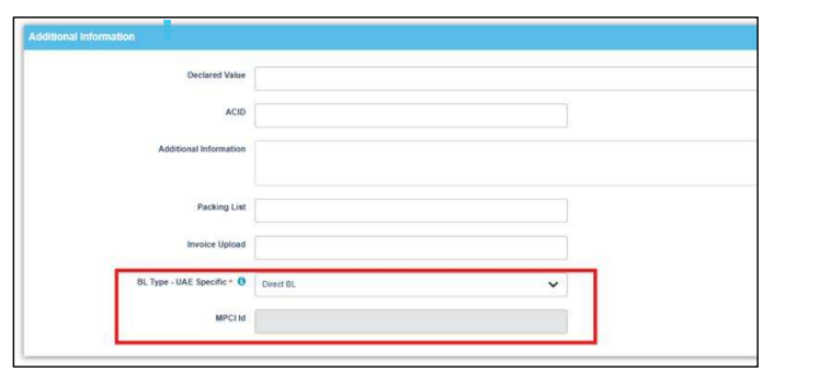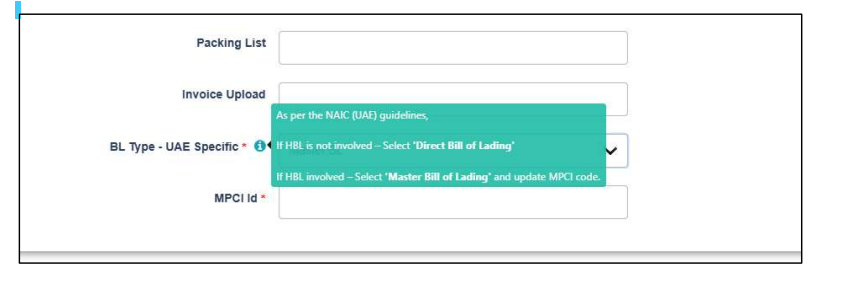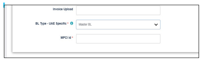 When selecting ‘Master BL’, MPCI ID will be mandatory for proceeding