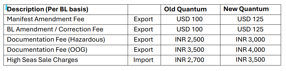 Please be informed of the upcoming change to the quantum of the Terminal Handling Charges (THL for loading and THD for discharge) in NHAVA SHEVA – INDIA. The revised tariff will take effect on June 1st, 2025, based on the actual arrival or departure date of the cargo.